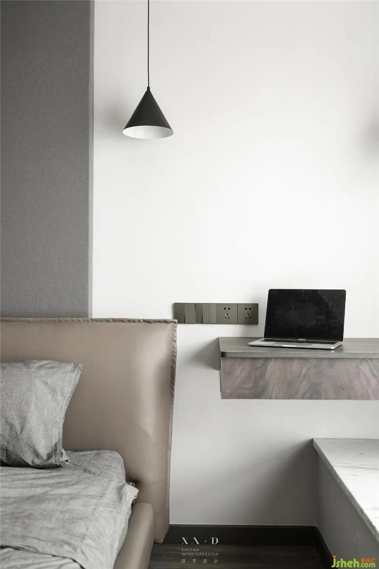主臥皮質的床頭光滑服帖,表面極為低調(diào)的光澤感,裝修公司讓輕奢的現(xiàn)代氣息油然而生。懸空式的辦公桌,不會讓室內(nèi)的空間顯得逼仄,又提升了房間的功能性。