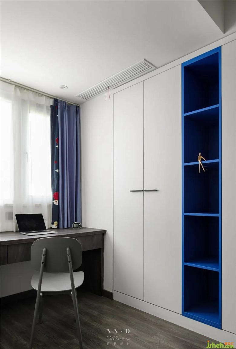 對于孩子來說,房間是他們學習、玩耍的私人空間。明媚的藍白色彩,讓房間里被夢幻暢想所填滿。依窗而設的書桌,把最新鮮的空氣、最自然的光源送到孩子身邊。