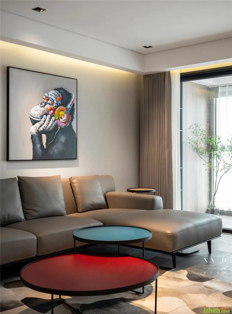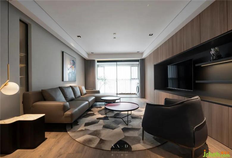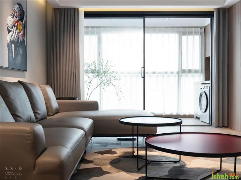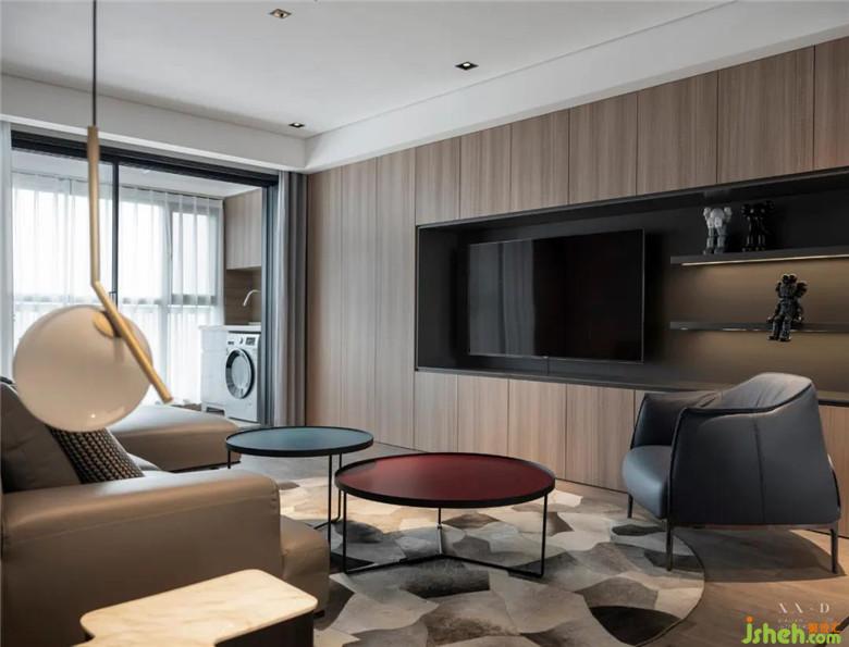 客廳中的層次感,在第一眼中便能分明地呈現(xiàn)。木質(zhì)的電視墻與地面相連,為舞步貢獻(xiàn)出“踢踢踏踏”的足音。短絨地毯鋪就一個(gè)圓形的舞池,使得音樂(lè)與呼吸都更加醉人。皮沙發(fā)的慵懶情調(diào),把簡(jiǎn)單的陳設(shè)襯托得風(fēng)情萬(wàn)種。