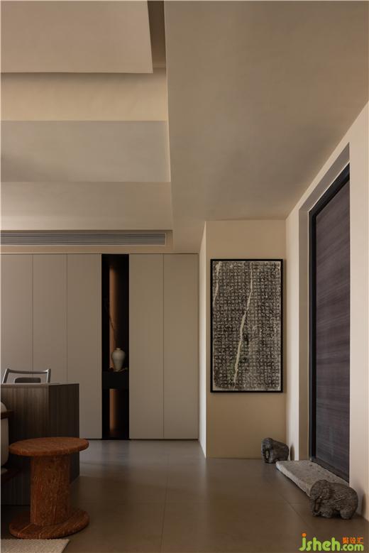 門口的東山之石、兩側(cè)的青石象、墻上的碑拓,都是男主人的收藏,運(yùn)河與岸裝修設(shè)計(jì)有的是機(jī)緣巧合下淘來(lái)的老舊物件,有的是想方設(shè)法才覓得的心頭好,第一眼看到它們就覺得很有眼緣,這些合乎心意、情有獨(dú)鐘的物品,構(gòu)成了獨(dú)一無(wú)二的玄關(guān)。