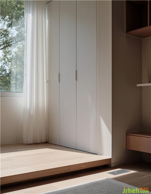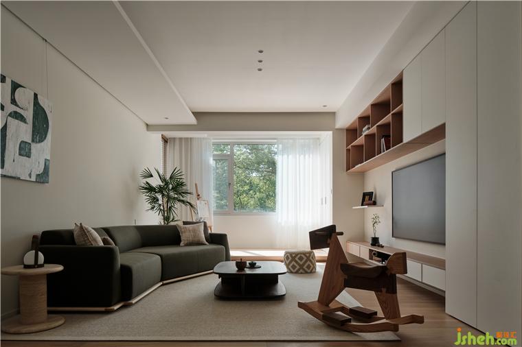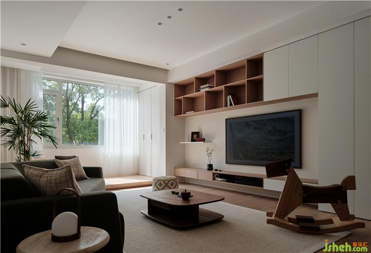 家裝設(shè)計(jì)借結(jié)構(gòu)關(guān)系迎接日升日落的變幻之美,透過窗框視角保留自然意境,讓綠意呼應(yīng)空間內(nèi)部的木元素,營(yíng)造置身自然的輕盈松弛狀態(tài)。構(gòu)建地臺(tái),再次擴(kuò)展自然調(diào)性,省略冗余陳設(shè),以借景手法聯(lián)通內(nèi)外,為精神世界空出一處靜享區(qū)域。