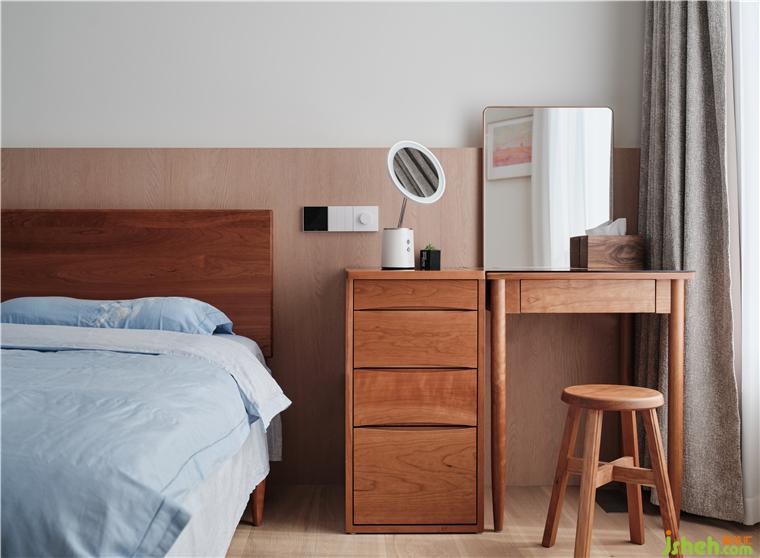 家裝設(shè)計調(diào)節(jié)不同色調(diào)與質(zhì)感的分布形式、呈現(xiàn)比例、搭配意趣、實際功用,構(gòu)建出三個場景,契合睡眠、梳妝、閱讀的不同訴求。