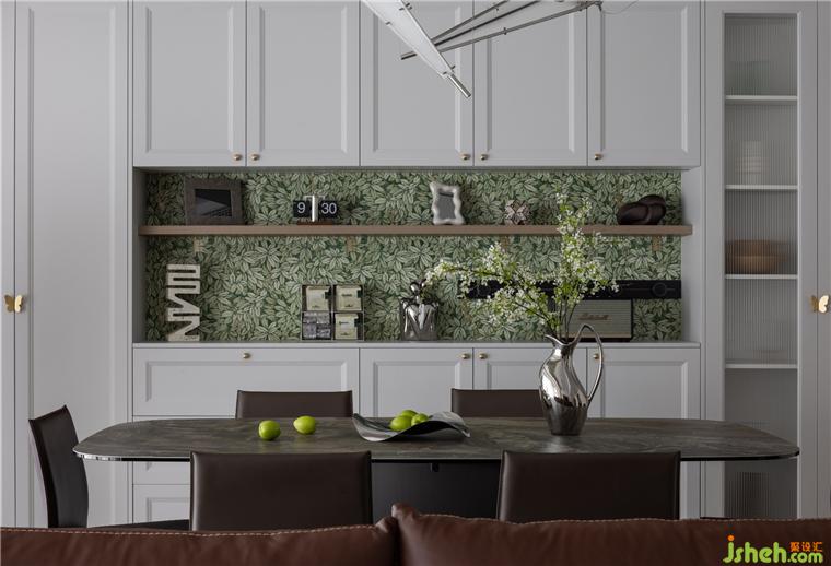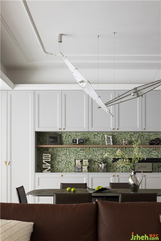 千鳥格沙發(fā)佇立一旁,等待著主人歸來,為他滌去一整日的疲憊。淺綠色的花磚與綠植相呼應(yīng),天鵝港豪宅設(shè)計(jì)為空間潤色,恰如其分地展現(xiàn)了法式的精致與清新。每天打開窗簾,就能夠感覺到身心舒暢。