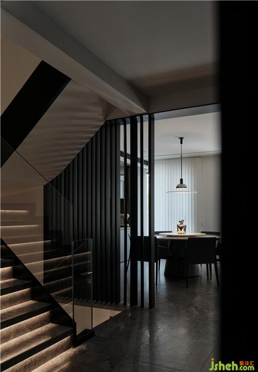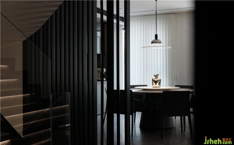 重構(gòu)不同空間的關(guān)系,滿足生活的儀式感,設(shè)計格柵型隔斷,過渡階梯并呼應(yīng)垂簾,鹽城私宅裝修設(shè)計以一種半私密的合圍方式區(qū)分空間的功能,同時延續(xù)家人之間的互動需求。鋪墊啞光質(zhì)感,襯托簡奢風(fēng)尚。