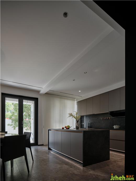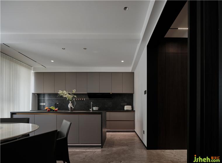 鹽城私宅裝修設(shè)計選用穩(wěn)重色調(diào)的島臺作軟隔斷,放任橫向線條的動勢漸次勾勒出空間層次,善用無主燈設(shè)計擴展縱向尺度的疏朗氣質(zhì),引入自由體感。凹凸結(jié)構(gòu)與色調(diào)變化同步,衡量周圍環(huán)境的特征,讓人將時光傾注于熱愛的美食。