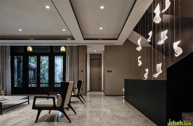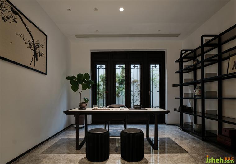 曲徑通幽處,無言詩意美。一排架,一幅畫,使空間的縱深匯集于遠(yuǎn)景,透過紋理的修飾,別墅裝飾將植物的生命力納入茶盞之形,分次品茗,細(xì)嗅清香,契合了精神向往。