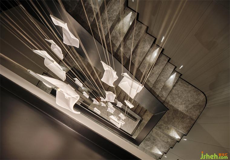 點狀光體,以疏密有道的形式,顯露出不同場域的特質(zhì),引入海涵書卷的概念,借用簡筆形態(tài)綻放靈動的序列感,拉伸了上下結(jié)構(gòu)的深度,豐富了轉(zhuǎn)折區(qū)域的趣致。