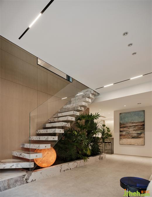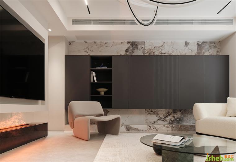 復式裝修設(shè)計憑借天然石紋的恢宏氣韻,傳遞天地靈氣,疊層暗色收納柜,巧妙糅合了視覺層次美感與實用功能需求,助力培養(yǎng)紛繁多樣的生活儀式感。By virtue of the magnificent charm of natural stone, it conveys the aura of heaven and earth. The stacked dark storage cabinet cleverly blends the aesthetic feeling of visual level and practical functional needs, helping to cultivate the diversified sense of life ritual.