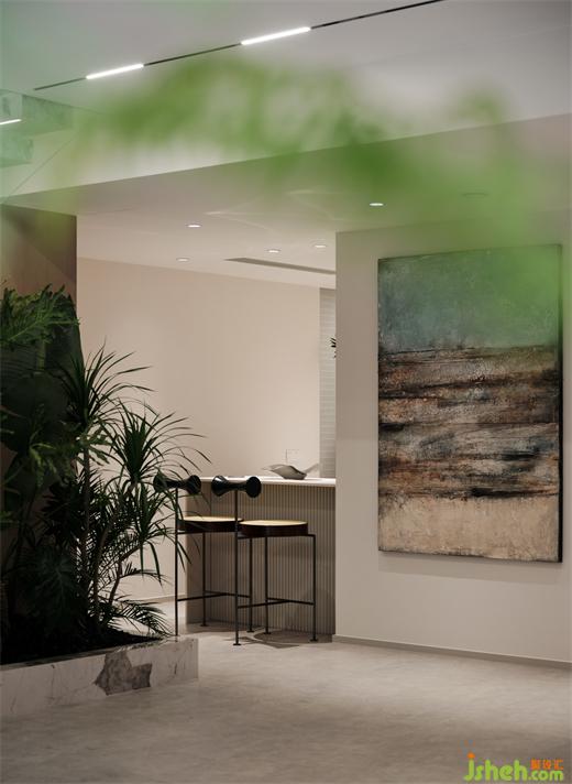 考量天花轉(zhuǎn)折面的特征,置入階梯場景,契合起伏相似的節(jié)奏感,種一排樹,置一個球,讓浪漫的意境再造自然風情,烘托出吧臺的慵懶氛圍。Consider the characteristics of the ceiling turning surface, place the ladder scene, fit the undulation similar sense of rhythm, plant a row of trees, set a ball, so that the romantic mood to recreate the natural style, foil the lazy atmosphere of the bar.