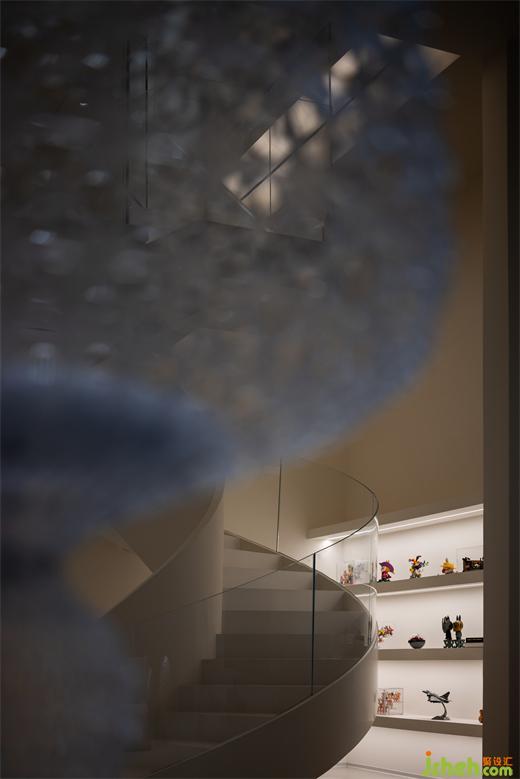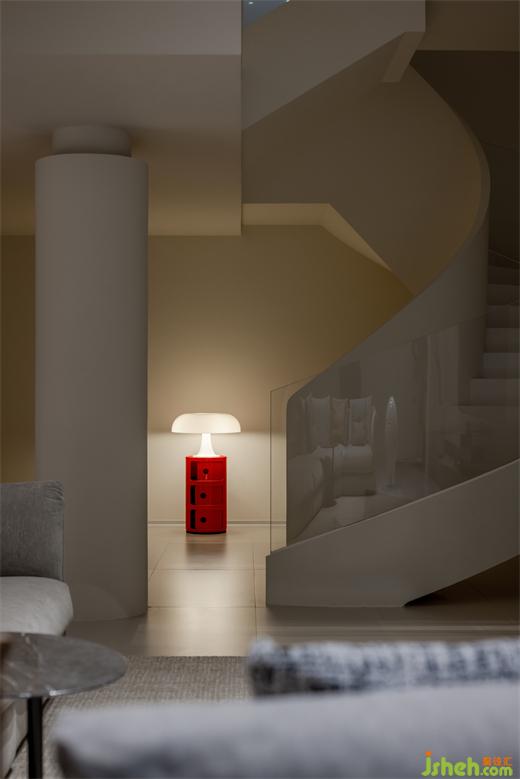 復(fù)式設(shè)計優(yōu)雅的旋轉(zhuǎn)樓梯則猶如一件精心雕琢的藝術(shù)品,矗立于空間之中,運用玻璃材質(zhì),不僅維持了整體美感,更讓光線能夠自由穿梭,為空間注入靈動氣息。