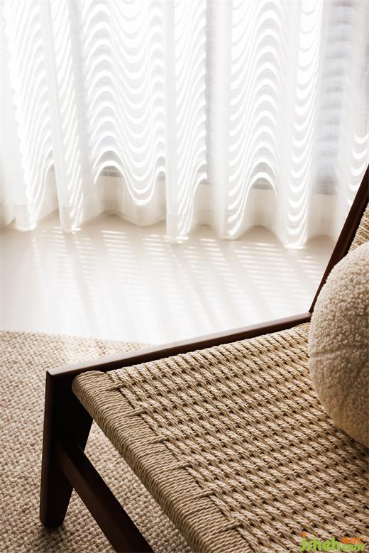 簾動(dòng)微風(fēng)起,為空間增添朦朧的美感。陽(yáng)光透過(guò)縫隙,灑下斑駁的光影,客廳瞬間被柔和的光暈包圍。家中的空氣似乎也沾染了這股溫柔,讓人心生寧?kù)o,舒適自在。