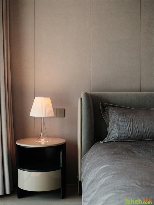 柔和的灰色可以營(yíng)造平靜的氛圍,用于臥室背景色最適合不過(guò)。陽(yáng)臺(tái)與睡眠空間用一扇黑玻移門進(jìn)行阻隔,它既有玻璃的通透輕盈,又帶著黑色的神秘深邃。