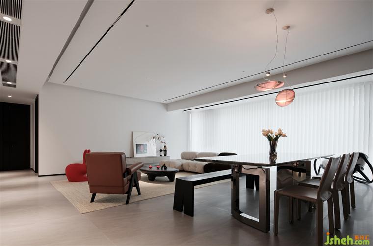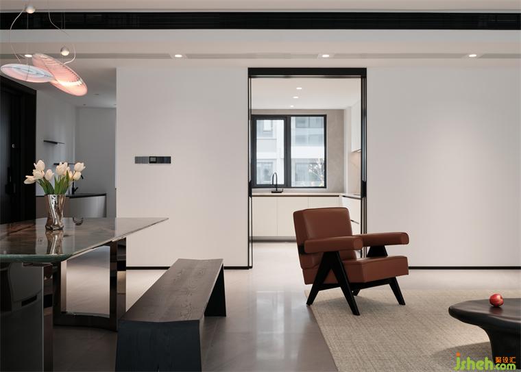 客餐廳以黑白對(duì)比色彩為基底,凹凸有致的立面設(shè)計(jì)增強(qiáng)空間層次感,創(chuàng)造出既和諧統(tǒng)一又各具特色的空間布局。