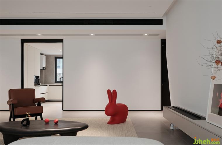 全屋采用無(wú)主燈照明方式,減少直射光的刺激,使室內(nèi)光線顯得更加柔和,從而提高居住舒適度,同時(shí)這一設(shè)計(jì)也呼應(yīng)著空間簡(jiǎn)約主義的內(nèi)核。