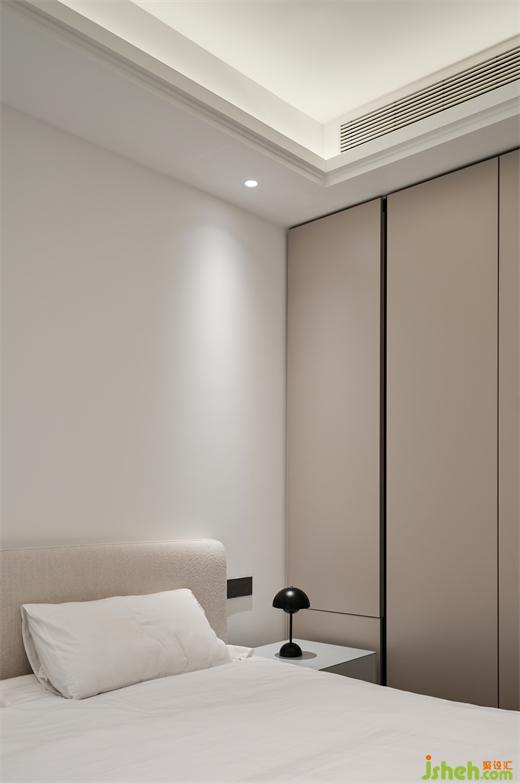 大平層設(shè)計(jì)次臥運(yùn)用純凈的色彩,留白美學(xué)讓整個(gè)空間沉浸在靜謐柔和的氛圍里,相比于繁復(fù)的裝飾風(fēng)格,這種簡(jiǎn)約裝修更能觸動(dòng)人心,帶來(lái)清爽、舒適的感受。