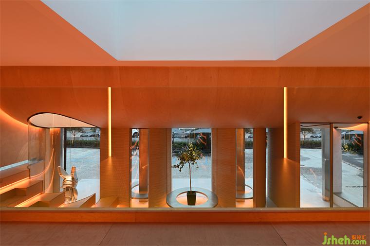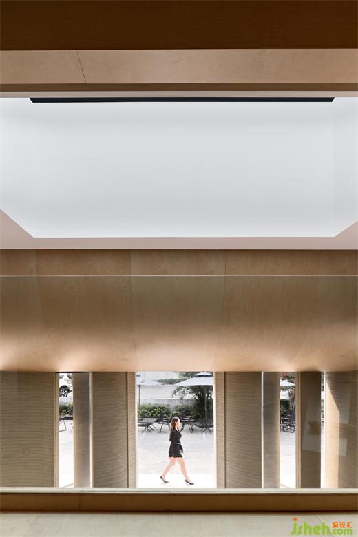 將柔感天花下沉,調和立面多處透光的輕量感,咖啡廳設計達成空間的穩(wěn)定性。