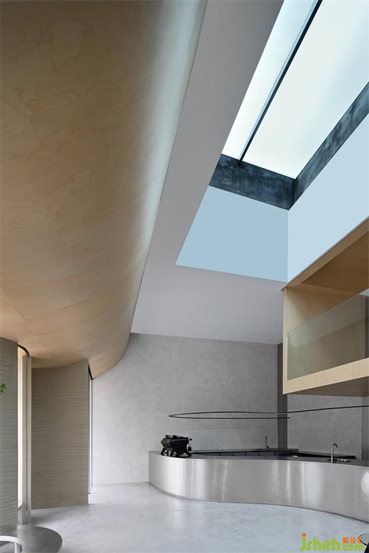 受音樂劇場啟發(fā),設置小面積梯臺狀坐臺,咖啡廳設計以符合人體工程學的階梯高度搭配溫潤樺木。