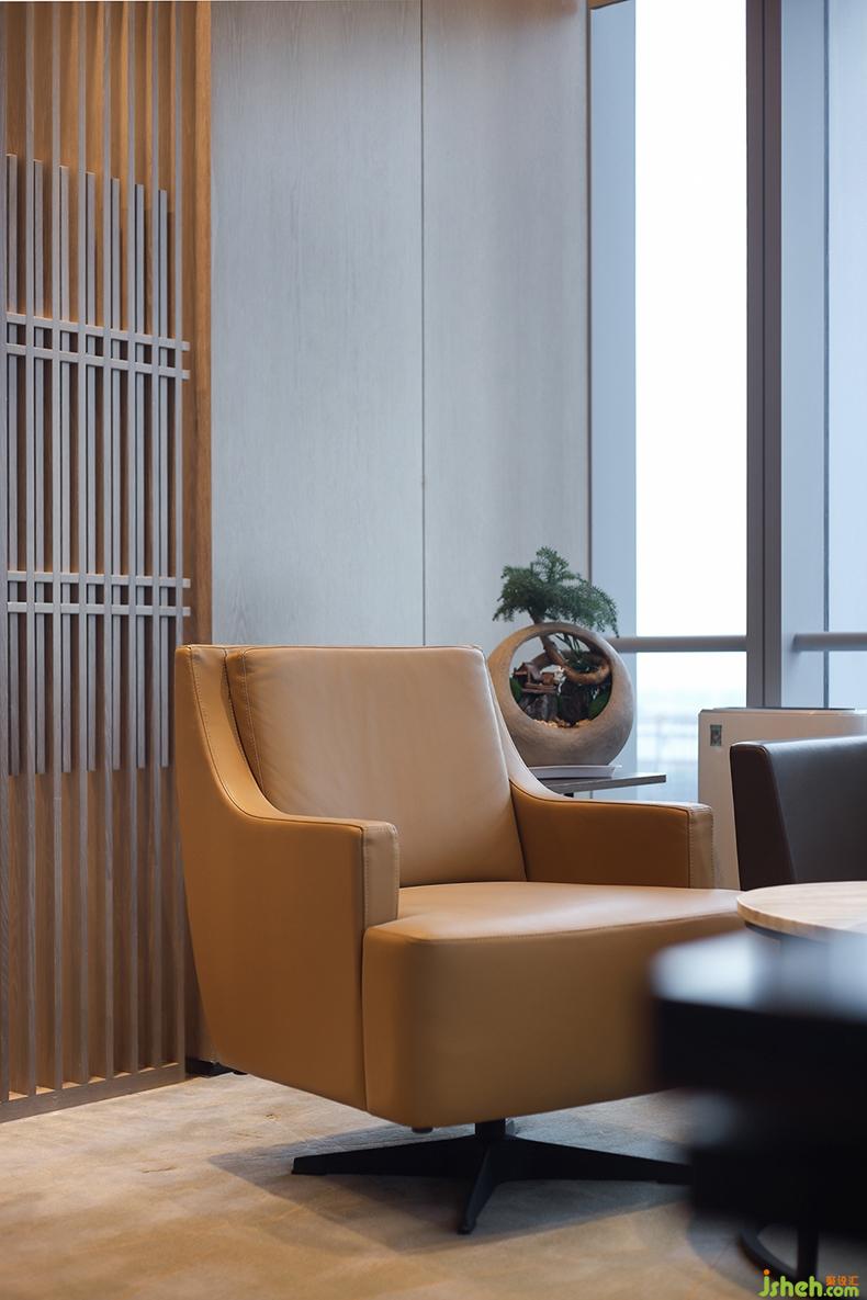 VIP接待室,既有東方韻味的木質(zhì)桌椅,又有現(xiàn)代簡約風(fēng)的沙發(fā),兩者和諧搭配,也展示了企業(yè)兼容并包的開放特性。