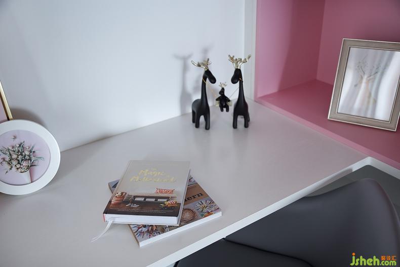顯然女孩鐘愛(ài)Hello Kitty和麋鹿,從顏色到款式,床品到吊燈,飾品到掛畫(huà),自然流露的歡喜,無(wú)不透露出粉色泡泡的精致與可愛(ài)。
