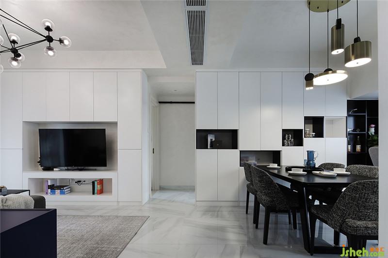 整潔干凈的餐廳,將美感和收納發(fā)揮到了極致。餐邊柜采用一柜到頂?shù)脑O(shè)計(jì),不浪費(fèi)每一寸空間,統(tǒng)統(tǒng)變成收納區(qū)域!中間的開放式收納區(qū)則可隨手放置一些物品,十分靈活。