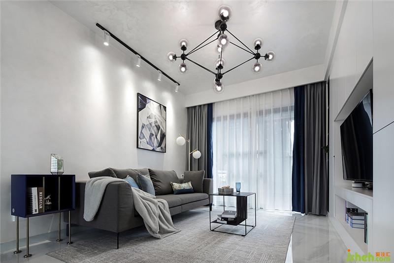 深灰色布藝沙發(fā)搭配黑色鐵藝茶幾、金屬元素邊幾,再配以一副藝術(shù)掛畫裝飾白色墻面,巧妙地將生活形態(tài)與視覺美學(xué)相融合,整個(gè)空間盡顯溫馨又不失大方。