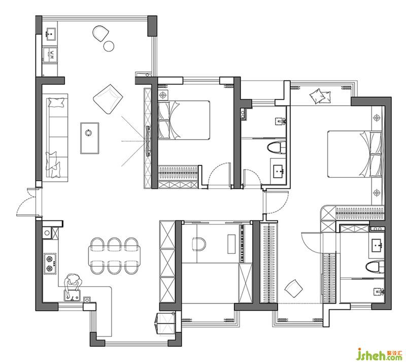 在裝修過程中,我們很容易發(fā)現(xiàn),當(dāng)業(yè)主托付真實(shí)信任,設(shè)計(jì)方也及時(shí)予以回應(yīng)和支持,其結(jié)果必然是收獲驚喜的。哪怕是衛(wèi)生間區(qū)域,磚、潔具、鏡柜的選擇都經(jīng)過了深思熟慮,使用起來更舒適,視覺上也十分美觀。