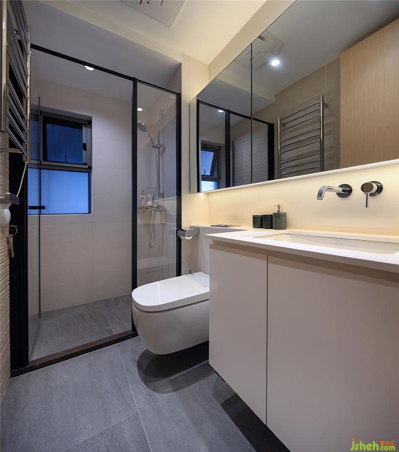 美感來(lái)源于對(duì)生活的熱愛(ài),精心布置后,就連衛(wèi)浴間都熠熠發(fā)光。特意選用的推拉式鏡柜不僅滿足了收納和照鏡子的需求,還增加了輔助光源提高亮度,讓照鏡子更加清晰,也增添了空間的氛圍。深圳裝修公司