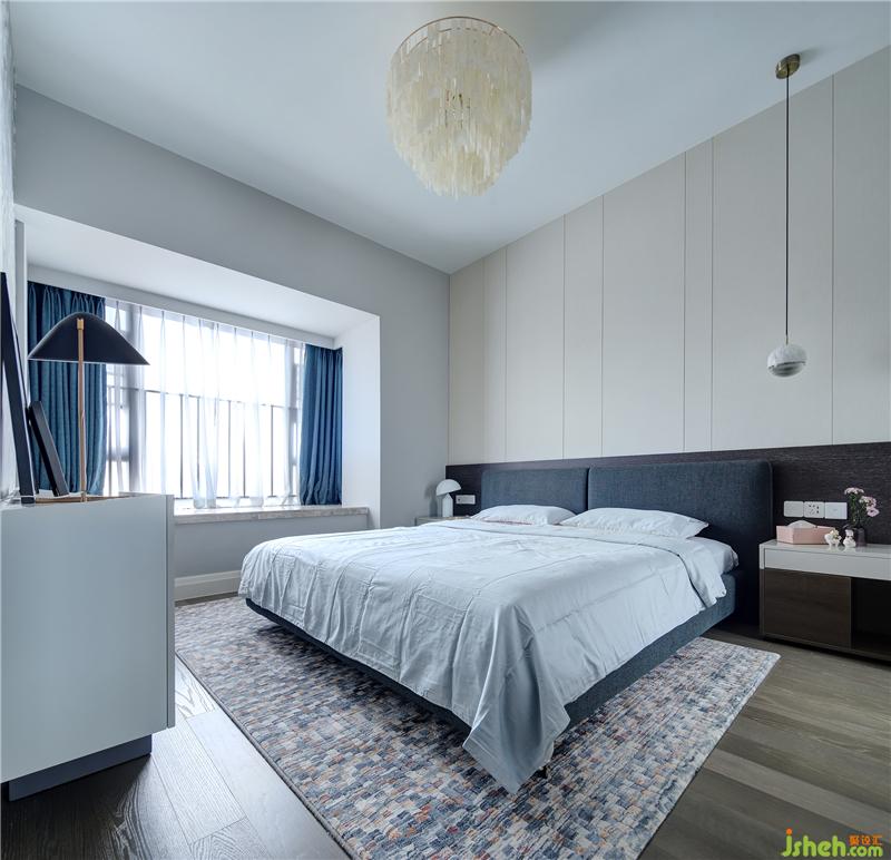 素雅的藍(lán)色、柔和的米色、偶爾出現(xiàn)的一抹黑色,奠定了主臥舒緩的主旋律。主臥最吸睛的莫過于業(yè)主鐘愛的貝殼燈,它由貝殼制作而成,當(dāng)中間的燈泡點(diǎn)亮?xí)r,燈光會(huì)透過各個(gè)貝殼折射出來,極具韻味,浪漫而溫馨。而除了照明功能外,貝殼燈平時(shí)也可視為裝飾品,令人賞心悅目。室內(nèi)設(shè)計(jì)師