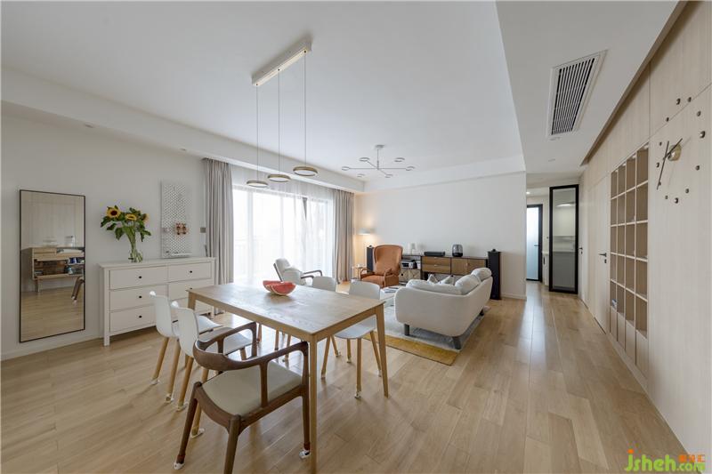 素雅的白色和溫潤的木色構(gòu)成了空間的主旋律,它不同于現(xiàn)代風時尚硬朗的感官體驗,憑借更溫馨舒適的姿態(tài)出現(xiàn),讓人倍覺安心。