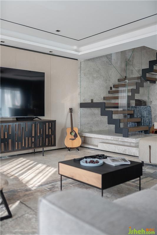小到裝飾品的擺放搭配,大至家具的選品考究,每一處都散發(fā)著個性、高級的氣息。樓梯處暗藏的燈光更是營造了絕佳的空間氛圍,伴隨著向上的每一個臺階,不同視角下的居家美感盡收眼底。