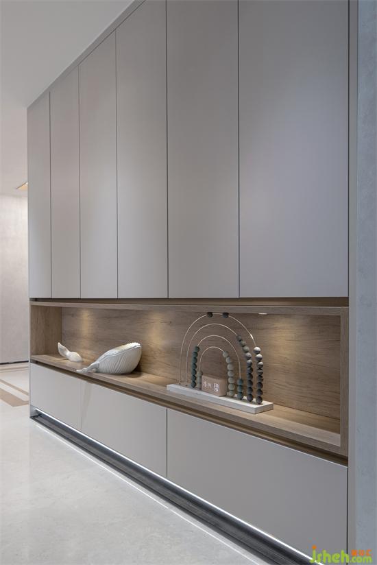 原本厚重的大理石電視背景墻,搖身一變?yōu)闈M墻收納柜,收納自然不在話下!深圳家裝設計雙側茶色玻璃鏡面柜門簡約而不簡單,裝點墻面,微透櫥窗內擺件,高雅貴氣。平板式按壓柜門使得空間更加規(guī)整干練,沒有一絲拖泥帶水,豪宅就該這么干凈利落!