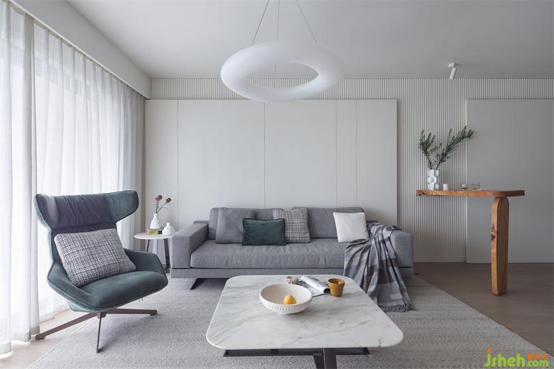 整個客廳硬裝部分以至簡純潔的暖白色調(diào)為主,軟裝部分加入了多層次高級灰元素。深圳家裝設計整個空間雖不是驚艷一時的,卻是能歷久彌新、耐看耐用、經(jīng)久不衰、永不過時。