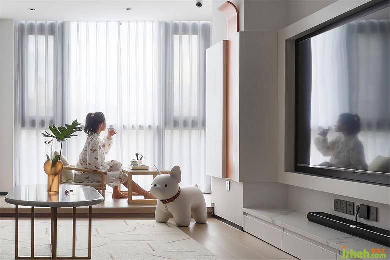 為避免弧形造型的單一生硬,在橫梁、立墻、背景中也多處使用相同圓弧造型,修飾了梁,也形成了家中特有的元素——圓潤(rùn)的細(xì)膩美感!