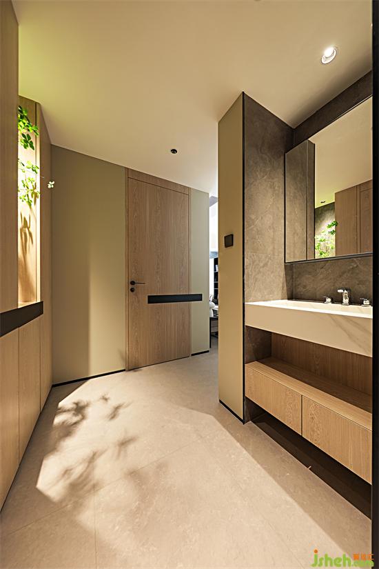 分體式浴室柜是提升高級感的關(guān)鍵,但對下水管的處理要求較高,為了顏值設(shè)計師也是拼了!鏡柜的實用性毋庸置疑,絕對是小戶型必備單品。