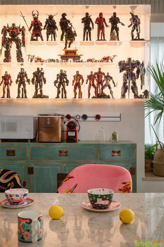 小姐姐心水各類具有視覺沖擊力的明亮色彩,認(rèn)為家里不應(yīng)該是寡淡無味的,而應(yīng)該是所有喜愛的集合體。設(shè)計(jì)的本質(zhì)就是為了滿足業(yè)主的需求,雖然小姐姐的需求看似多元難以統(tǒng)一,甚至稍有不慎就會混搭成拙,但這些在設(shè)計(jì)師面前都是小case!