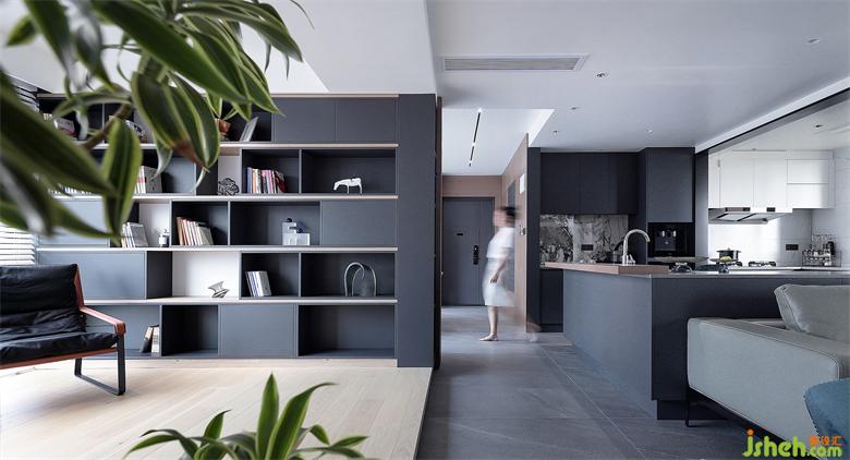 沒有過多的裝飾品,家裝設計用理性的深色調營造空間神秘又沉靜的氛圍,純男性的空間既有質感又有格調。