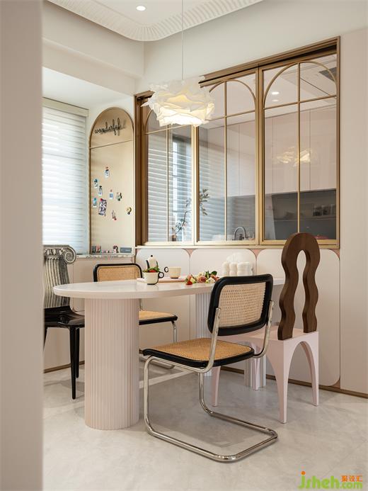 2、餐廚空間一體化呈現(xiàn),以弧形元素+玻璃材質+可開合設計完成功能與顏值結合,優(yōu)化餐廚區(qū)域動線,為三餐四季提供更多溫暖場景。