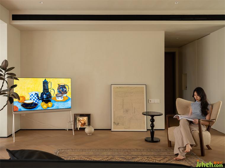 2、巧妙利用陽臺包柱空間打造壁爐裝飾,增加客廳氛圍感與設(shè)計(jì)亮點(diǎn)。