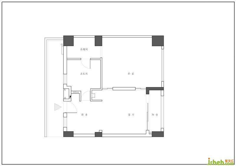 4、客廳與臥室之間有大片空間浪費,空間利用率低。