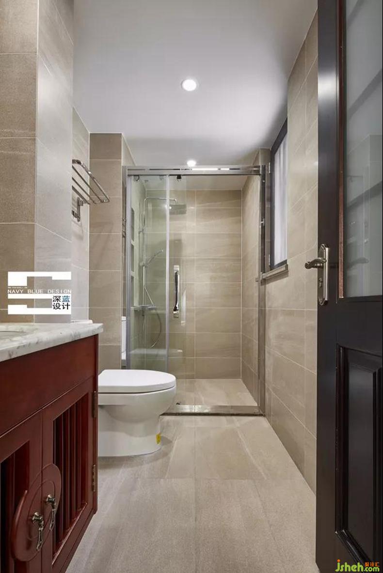 三樓的主衛(wèi)生間,兼顧兒子和上下樓主客偶然使用,一改成熟穩(wěn)重的中式風格,采取的是更明亮素雅的簡約配置。