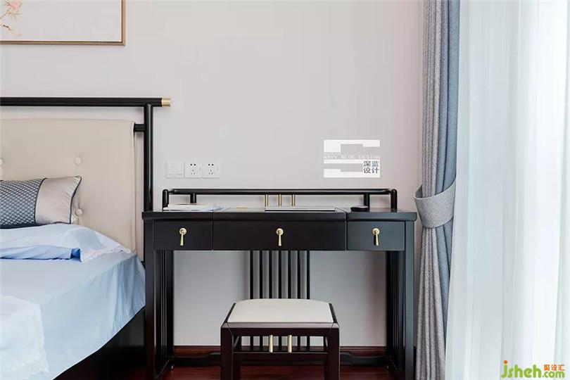 灰藍(lán)色窗簾和床品令臥室空間看起來更干凈、素雅,加入顏色和輪廓各有異趣的扶手椅,表現(xiàn)出精英階層含蓄、高雅的生活品質(zhì)。
