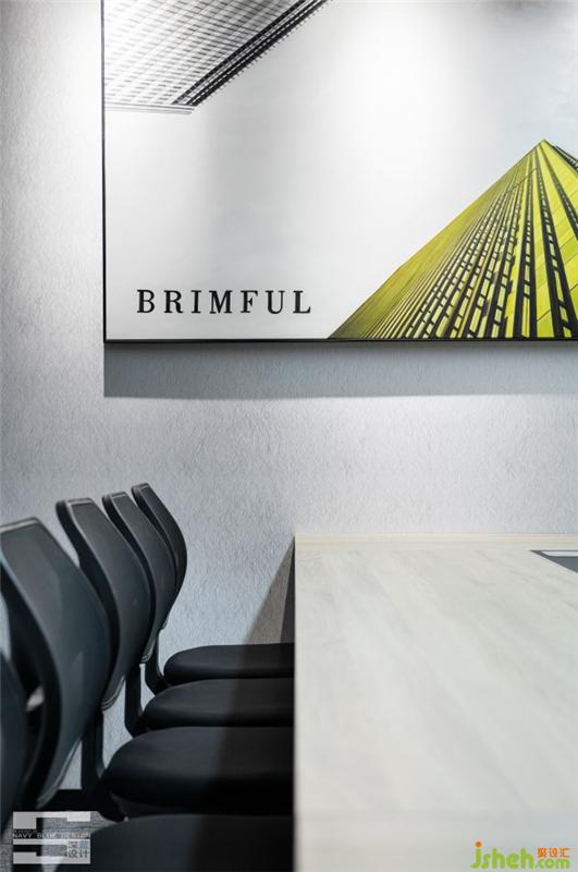 會(huì)議室應(yīng)該是最耗費(fèi)精力的區(qū)域了,承擔(dān)著公司一起開大小會(huì)議的作用,所以設(shè)計(jì)師用玻璃門和折疊百葉進(jìn)行分隔,營造一個(gè)安靜、隱蔽的空間;墻壁上的裝飾畫起到點(diǎn)睛之筆作用,仔細(xì)看,會(huì)發(fā)現(xiàn)公司的名字就在其中。