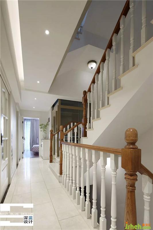 乳白欄桿,咖色扶手,彰顯了美式居家的復(fù)古感。拾級而上,從不乏人間煙火的廚房和餐廳,走入歸于平靜的臥室空間。