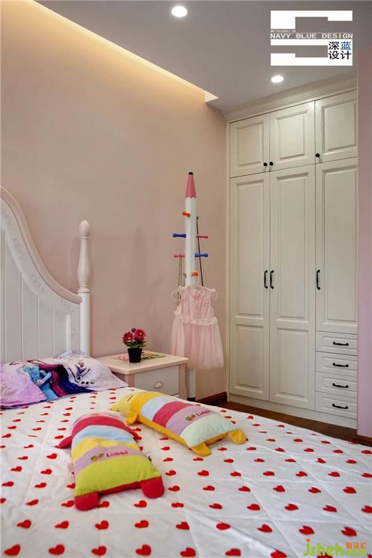 溫馨的粉紅色為空間的主基調(diào),柔美輕巧的家具,浪漫唯美的紗簾,為營造一種甜蜜的氣氛起到點(diǎn)睛之筆的作用,還有充滿愛心的床品,俏皮可愛的玩具,當(dāng)這些元素與粉色基調(diào)交相呼應(yīng),賦予臥室新的視野,體現(xiàn)了公主房的夢幻與甜美。