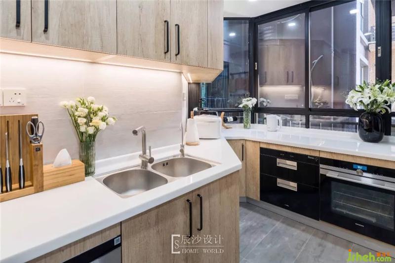 整個(gè)空間唯一改動(dòng)的地方是將廚房與生活陽(yáng)臺(tái)打通,增加了廚房的通透性和收納空間。