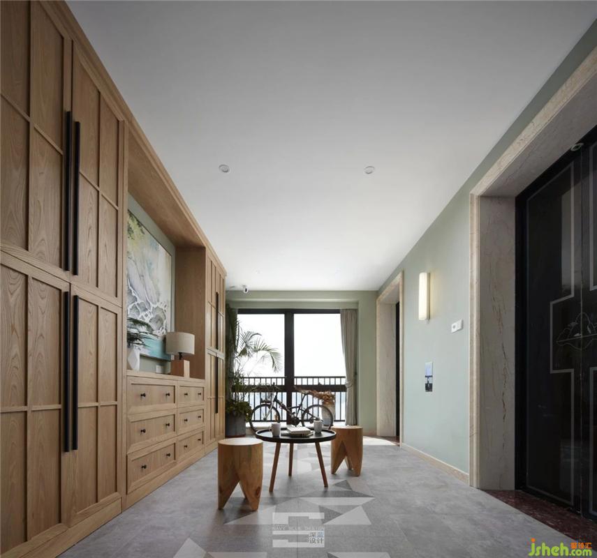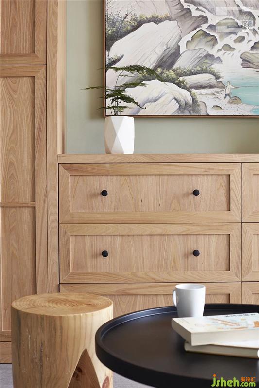 綠色的墻面搭配木色的柜子、茶幾、木凳子,進(jìn)門便是一股清新氣息撲面而來,讓人心曠神怡。室內(nèi)設(shè)計(jì)師