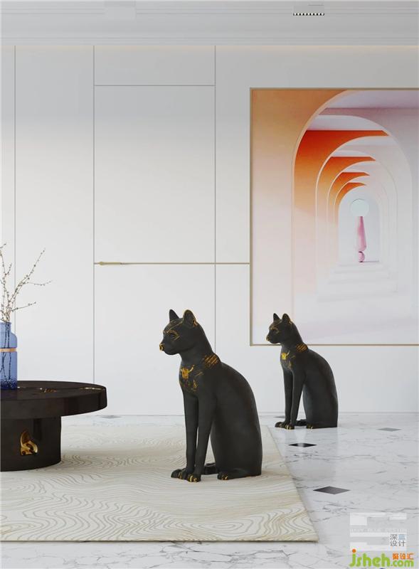 The space is dominated by large areas of light colors. In terms of material selection, we consider gypsum lines, metal and leather to enhance the brightness of the whole space. Horse hair and flannelette, when they are added with cloth of special technology, they will add a sense of value to the whole space, and to a certain extent, will add a breath of life to the space.