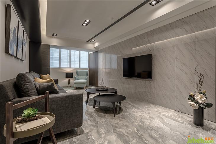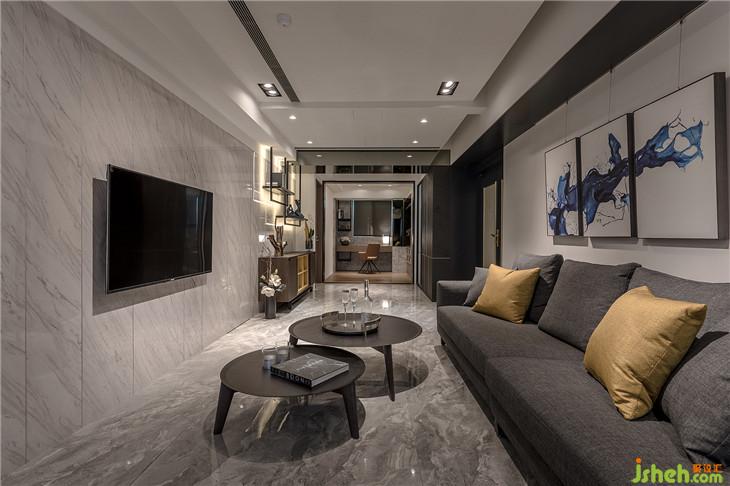 狹長(zhǎng)的客廳格局,透過電視墻面分割比例與淺色天然大理石的質(zhì)感呈現(xiàn)出屬于豪宅的尺度與氣場(chǎng)。室內(nèi)設(shè)計(jì)師