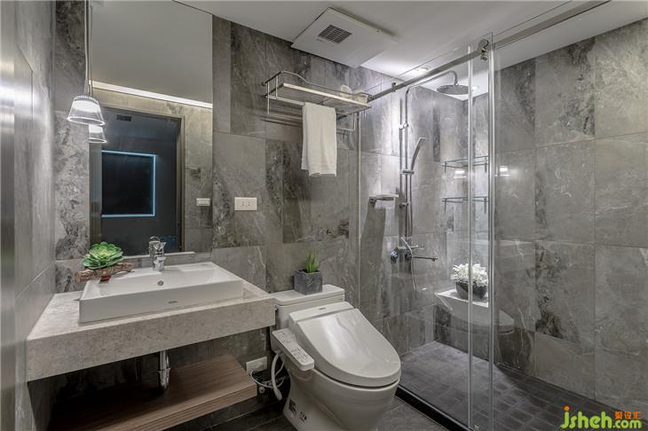 電視墻面與臥室門、公領(lǐng)域衛(wèi)生間門做結(jié)合放大了大理石電視墻的尺度,也解決了衛(wèi)生間門面對(duì)大門的窘境。室內(nèi)設(shè)計(jì)師