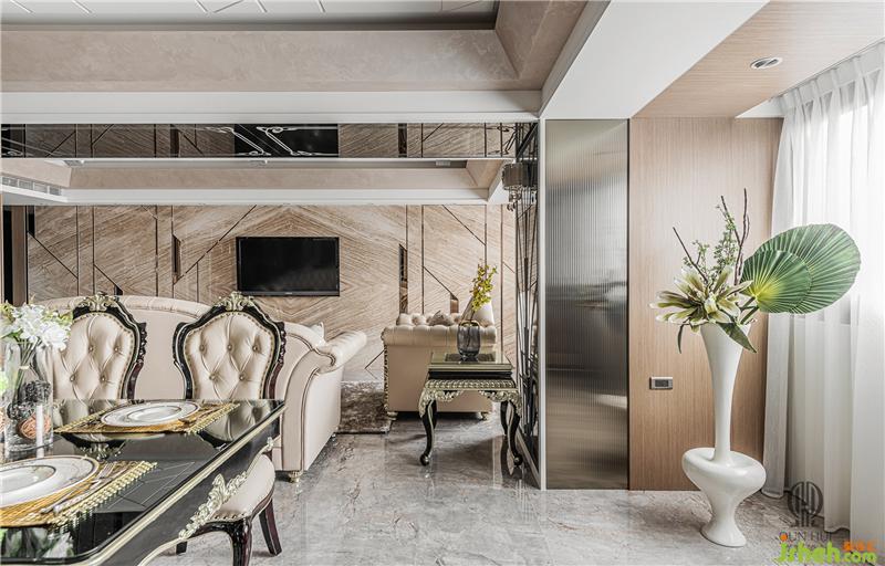 從迷你的8坪到寬闊的80坪,經(jīng)手過各式住商空間的設(shè)計(jì)總監(jiān) 汪暉哲、許家榮 ,在本案中,與創(chuàng)意總監(jiān) 張瑞克 一同執(zhí)筆,處理這座位于密集住宅區(qū)的48坪中型住宅,以簡(jiǎn)練線條精心重塑裝飾藝術(shù)的精致風(fēng)格,搭配鍍鈦茶鏡,及其他天然貝類材料,展現(xiàn)出耳目一新的視覺效果,形塑出貴氣宅邸的豐富表情;并在近似的環(huán)境色系中,巧妙地變化場(chǎng)域色彩,為住家精心打理出醒目飽滿,卻未顯半分凌亂的優(yōu)雅裝扮,使生活在處變不驚的步伐中煥發(fā)絕美風(fēng)采,并加入藝術(shù)史中的裝飾時(shí)期元素,使得空間具有文化深度,而非膚淺的華麗。
